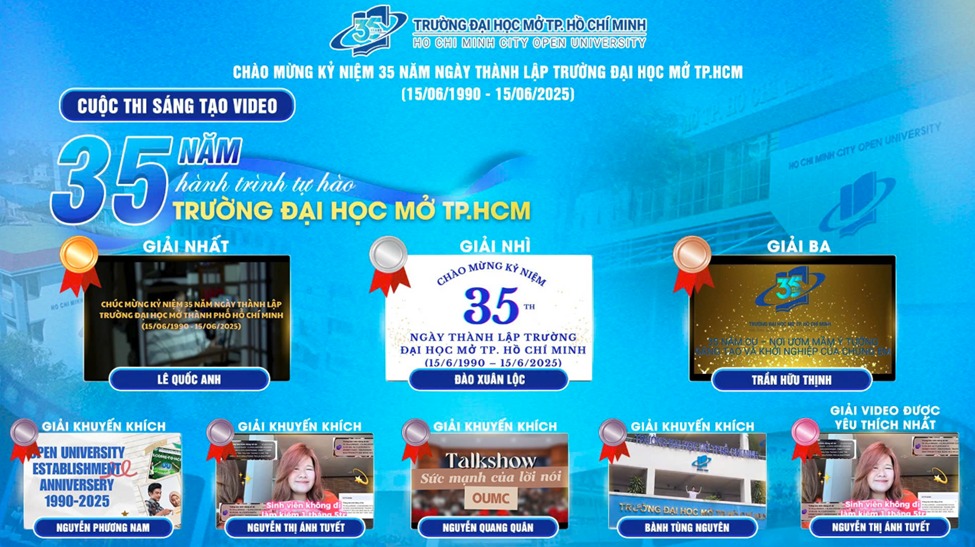 KẾT QUẢ CUỘC THI SÁNG TẠO VIDEO CHÀO MỪNG KỶ NIỆM 35 NĂM NGÀY THÀNH LẬP TRƯỜNG ĐẠI HỌC MỞ TP.HCM