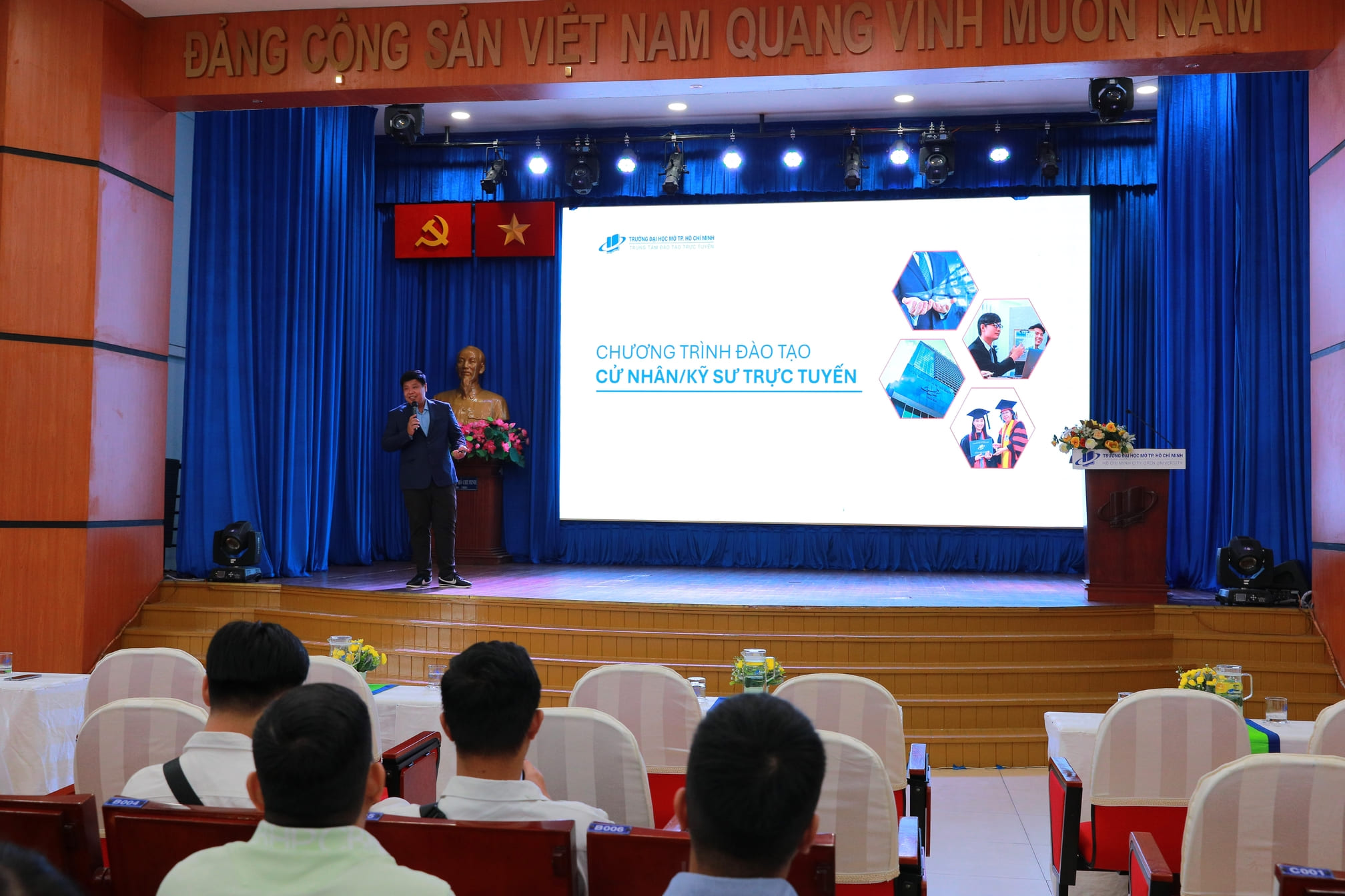 Sáng ngày 12/04/2026, Trường Đại học Mở Thành phố Hồ Chí Minh long trọng tổ chức Lễ khai giảng Chương trình Cử nhân/Kỹ sư đào tạo từ xa qua mạng Khóa 1/2026 tại cơ sở 97 Võ Văn Tần, phường Xuân Hòa, Thành phố Hồ Chí Minh và trực tuyến qua nền tảng Zoom.
