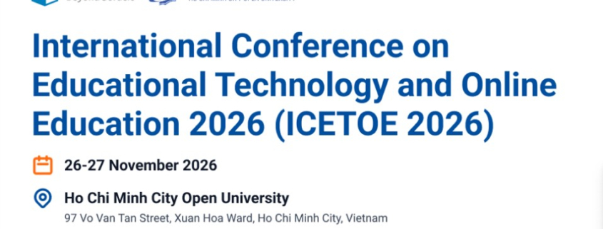 Trường Đại học Mở Thành phố Hồ Chí Minh tổ chức Hội thảo khoa học quốc tế về Công nghệ giáo dục và Đào tạo trực tuyến (lần 2) năm 2026 (International Conference on Educational Technology and Online Education 2026 – ICETOE 2026) với chủ đề “Xu hướng và Công nghệ Dẫn dắt Làn sóng tương lai của Học tập số”.